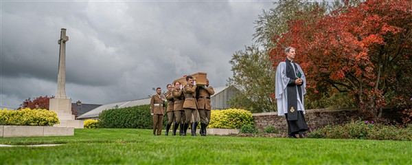 een begrafenisdienst plaats voor een onbekende Britse soldaat en een onbekende Duitse soldaat die tijdens de Eerste Wereldoorlog zijn omgekomen.