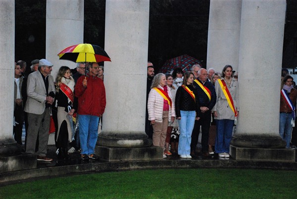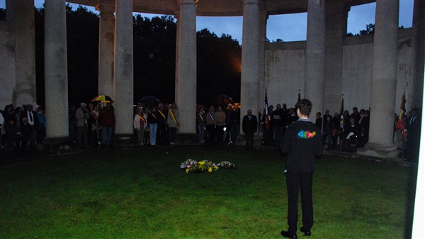 La pluie force le Comité de changer le déroulement de la cérémonie ; nous nous rassemblons sous la rotonde.