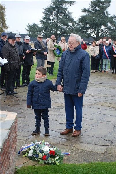 M. Masure président de l’UNC de Neuville en Ferrain accompagné d’un enfant