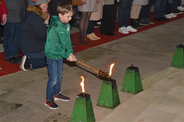 Aansteken van de toortsen.