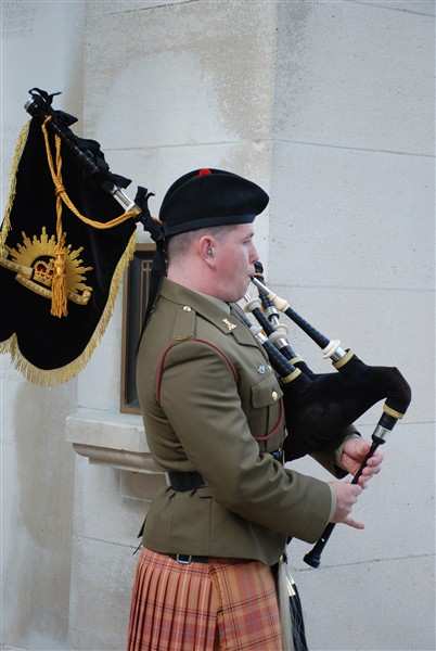 Le piper interprète "The Lament" pendant le dépôt de gerbes de fleurs ou couronnes par