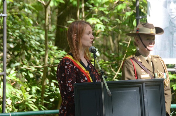 Welkomstwoord door burgemeester Alice Leewerk namens de gemeente Komen-Waasten.