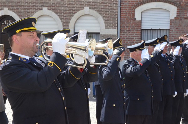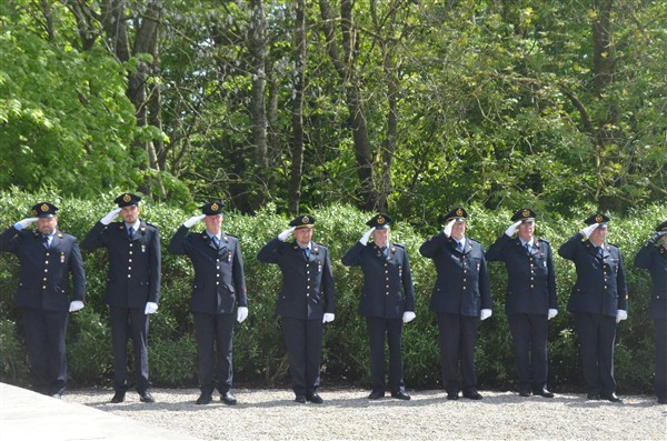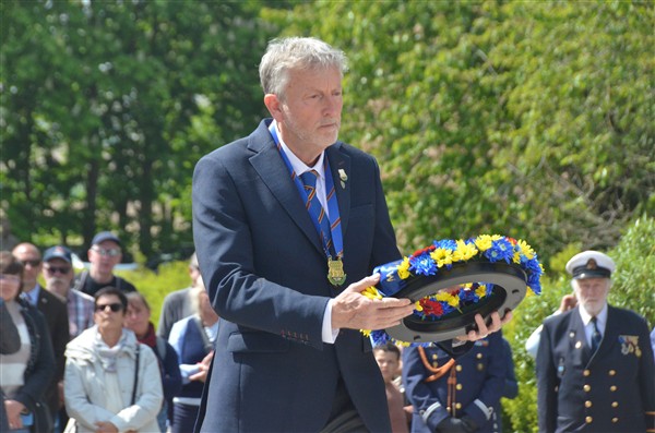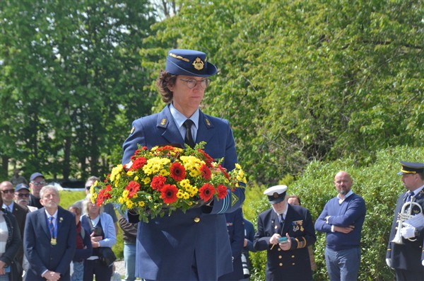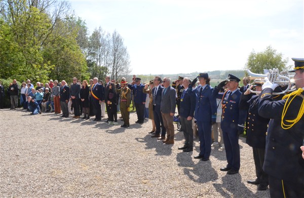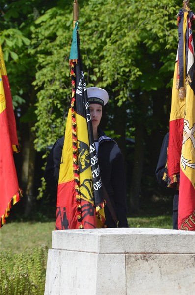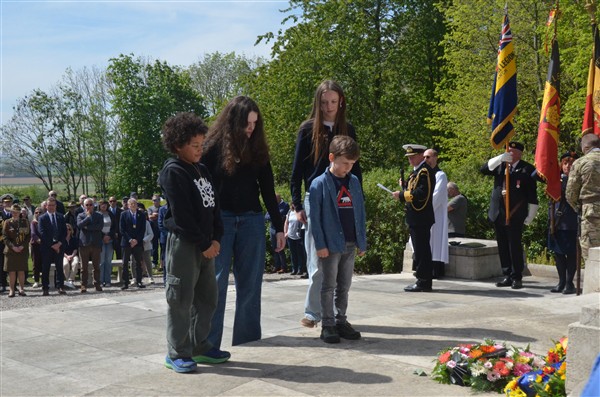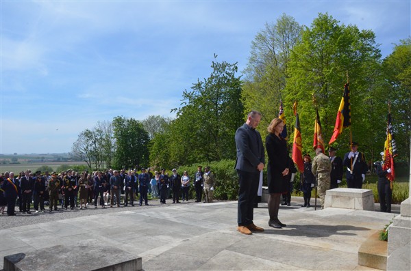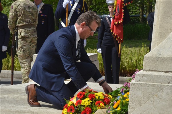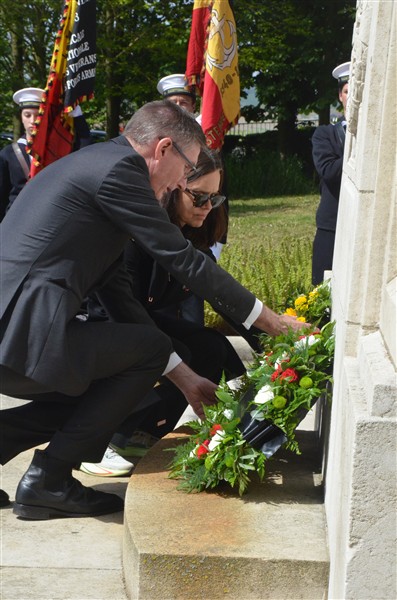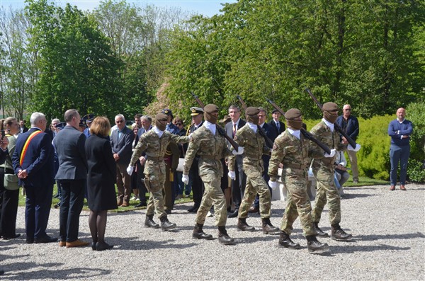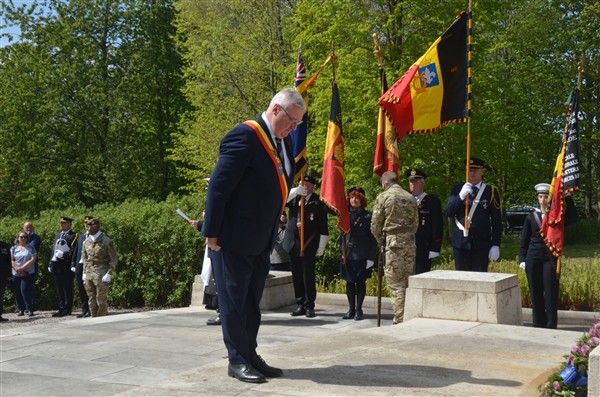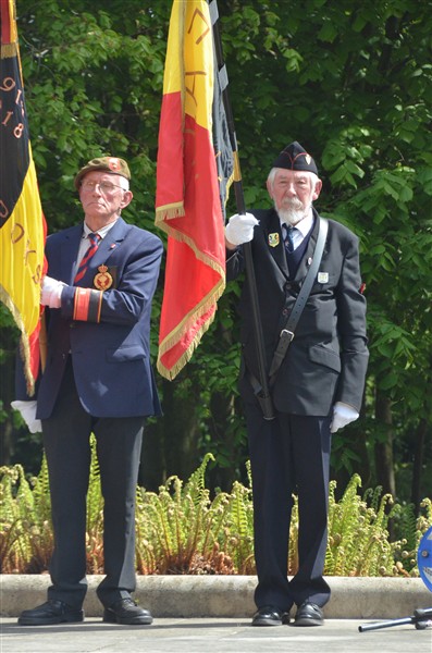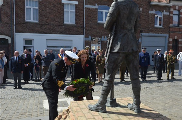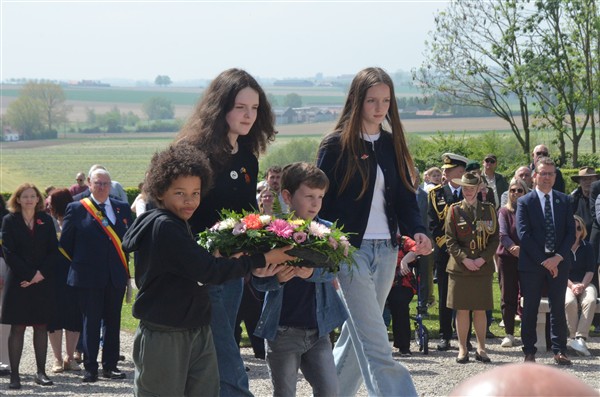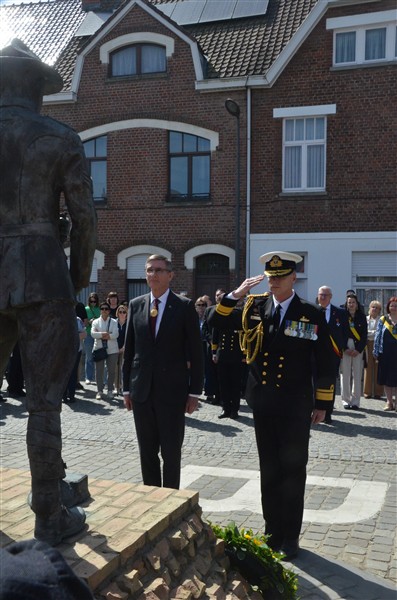 Daarna ging het richting de markt van Mesen waar bloemen werden neergelegd aan het gemeentelijk gedenkteken voor de oorlogsslachtoffers.