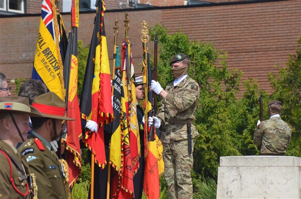 Tot slot werden ook bloemen neergelegd aan Sgt. Kiwi, de Nieuw-Zeelandse soldaat op de markt.