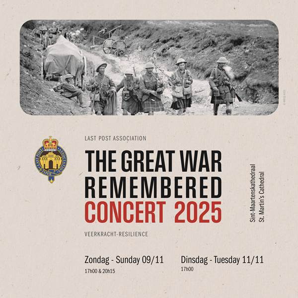 Jaarlijks organiseert de Last Post Association rond Wapenstilstand (9 & 11/11) het 'The Great War Remembered Concert' in de Ieperse Sint-Maartenkathedraal. Dit concert draagt bij tot herdenking door de tijd meer dan 110 jaar terug te draaien en het publiek in de atmosfeer van de Groote Oorlog onder te dompelen. Instrumentale en vocale muziek van de bovenste plank, in combinatie met originele WO1-beelden, maken dit concert, dat de afgelopen jaren telkens werd bijgewoond door 3.000 toeschouwers, uniek.